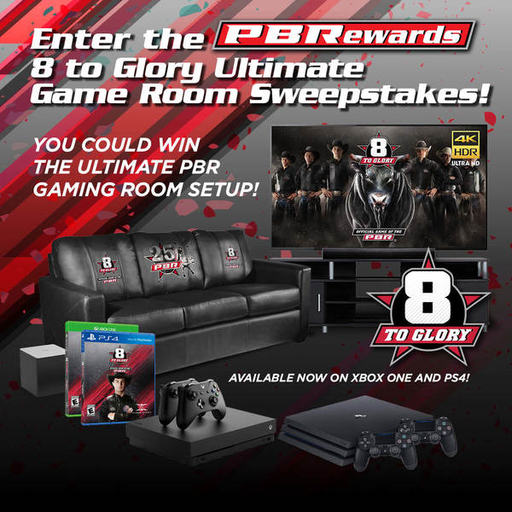 8 to Glory, det officiella spelet från Professional Bull Riders (PBR) är nu en del av PBRewards med utlottningen av ett 8 to Glory Ultimate Game Room.